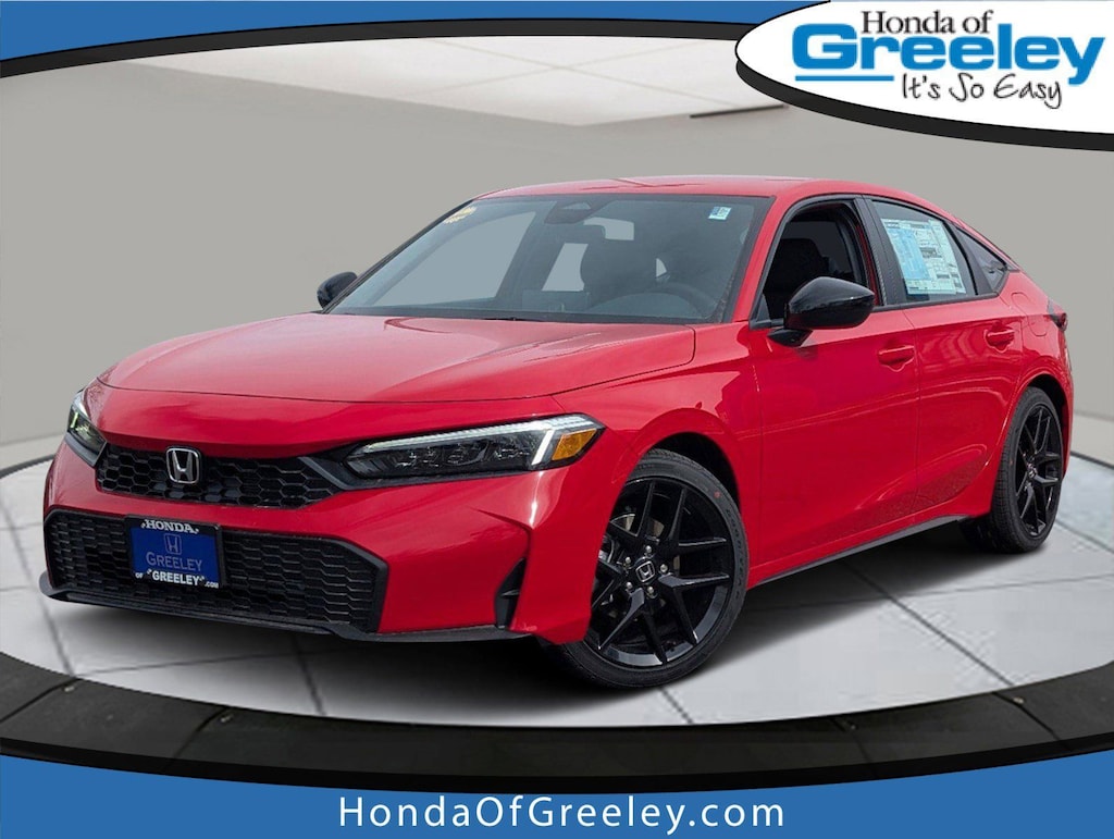 Rallye Red 2025 Honda Civic Sport FWD CVT 2.0L I4 DOHC 16V Black Artificial Leather, 4-Wheel Disc Brakes, 8 Speakers, ABS brakes, Adaptive Cruise Control: Adaptive Cruise Control (ACC) with Low-Speed Follow, Air Conditioning, Alloy wheels, AM/FM radio, Apple CarPlay/Android Auto, Auto High-beam Headlights, Automatic temperature control, Blind Spot Information (BSI) System warning, Brake assist, Bumpers: body-color, Cloth/Leatherette Seating Surfaces, Delay-off headlights, Driver door bin, Driver vanity mirror, Dual front impact airbags, Dual front side impact airbags, Electronic Stability Control, Emergency communication system: HondaLink, Exterior Parking Camera Rear, Four wheel independent suspension, Front anti-roll bar, Front Bucket Seats, Front Center Armrest, Front reading lights, Fully automatic headlights, Heated door mirrors, Illuminated entry, Knee airbag, Lane departure: Lane Keeping Assist System (LKAS) active, Leather Shift Knob, Low tire pressure warning, Occupant sensing airbag, Outside temperature display, Overhead airbag, Panic alarm, Passenger door bin, Passenger vanity mirror, Power door mirrors, Power steering, Power windows, Radio data system, Radio: 180-Watt Audio System, Rear anti-roll bar, Rear side impact airbag, Rear window defroster, Rear window wiper, Remote keyless entry, Security system, Speed control, Speed-sensing steering, Split folding rear seat, Steering wheel mounted audio controls, Tachometer, Telescoping steering wheel, Tilt steering wheel, Traction control, Trip computer, Wheels: 18" Gloss Black Alloy, Black Artificial Leather.