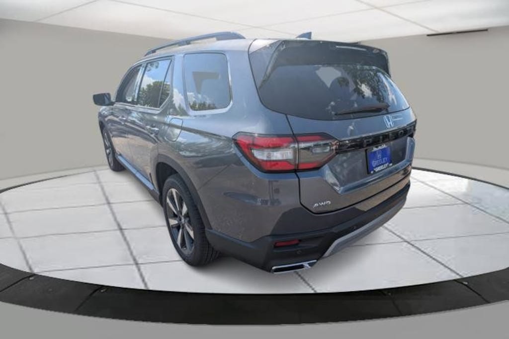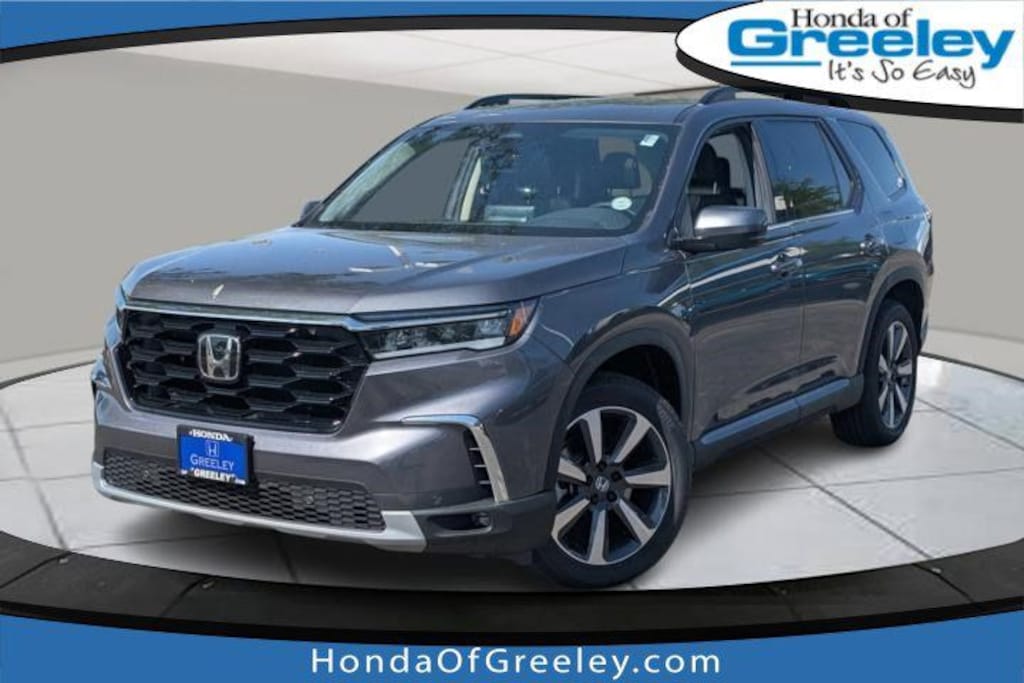 Modern Steel Metallic 2025 Honda Pilot Touring AWD 10-Speed Automatic 3.5L V6 DOHC 24V AWD, 12 Speakers, 3rd row seats: split-bench, 4-Wheel Disc Brakes, 4.167 Axle Ratio, ABS brakes, Adaptive Cruise Control: Adaptive Cruise Control (ACC) with Low-Speed Follow, Air Conditioning, Alloy wheels, AM/FM radio: SiriusXM, Apple CarPlay/Android Auto, Auto High-beam Headlights, Auto-dimming Rear-View mirror, Automatic temperature control, Blind Spot Information (BSI) System warning, Bose Premium Sound System, Brake assist, Bumpers: body-color, Compass, Delay-off headlights, Driver door bin, Driver vanity mirror, Dual front impact airbags, Dual front side impact airbags, Electronic Stability Control, Emergency communication system: HondaLink, Exterior Parking Camera Rear, Four wheel independent suspension, Front anti-roll bar, Front Bucket Seats, Front Center Armrest, Front dual zone A/C, Front fog lights, Front reading lights, Fully automatic headlights, Garage door transmitter: HomeLink, Heated door mirrors, Heated Front Bucket Seats, Heated front seats, Honda Satellite-Linked Navigation System, HondaLink Subscription Services, Illuminated entry, Knee airbag, Lane departure: Lane Keeping Assist System (LKAS) active, Leather Seat Trim, Low tire pressure warning, Memory seat, Navigation system: Honda Satellite-Linked Navigation System, Occupant sensing airbag, Outside temperature display, Overhead airbag, Overhead console, Panic alarm, Passenger door bin, Passenger vanity mirror, Power door mirrors, Power driver seat, Power Liftgate, Power moonroof, Power passenger seat, Power steering, Power windows, Radio data system, Rear air conditioning, Rear anti-roll bar, Rear reading lights, Rear seat center armrest, Rear window defroster, Rear window wiper, Reclining 3rd row seat, Remote keyless entry, Security system, SiriusXM, Speed control, Speed-sensing steering, Speed-Sensitive Wipers, Split folding rear seat, Spoiler, Steering wheel mounted audio controls, Tachometer, Telescoping steering wheel, Tilt steering wheel, Traction control, Trip computer, Turn signal indicator mirrors, Variably intermittent wipers, Wheels: 20" Shark Gray Machine Face w/Blk Lug Nuts, AWD.