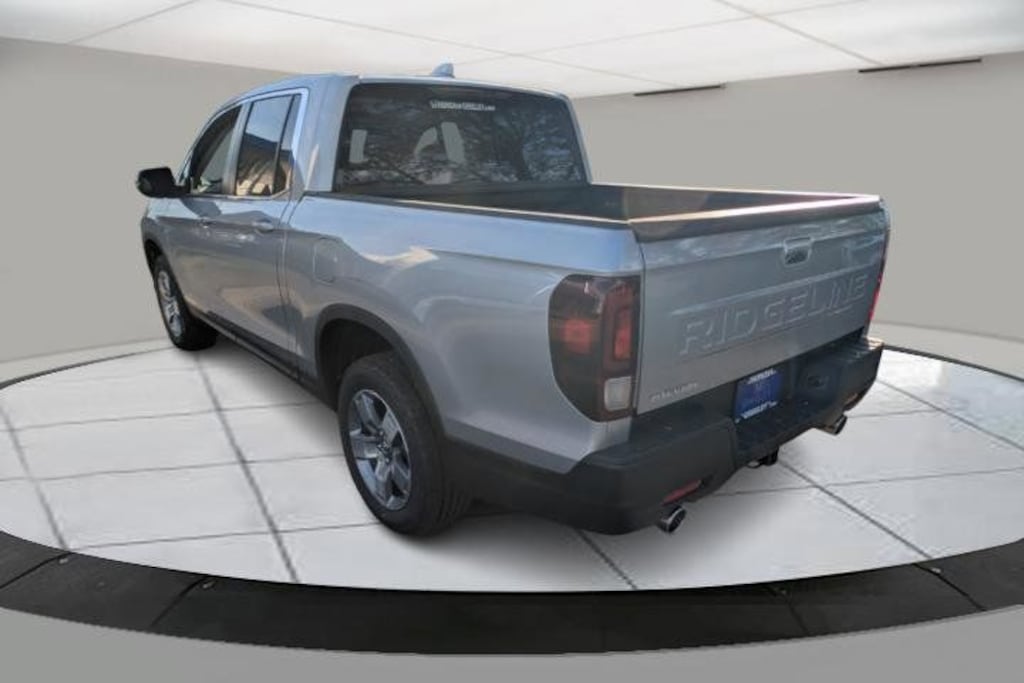 Silver 2025 Honda Ridgeline RTL AWD 9-Speed Automatic 3.5L V6 SOHC i-VTEC 24V Black Leather, 4-Wheel Disc Brakes, 4.33 Axle Ratio, 7 Speakers, ABS brakes, Air Conditioning, Alloy wheels, AM/FM radio: SiriusXM, Auto-dimming Rear-View mirror, Automatic temperature control, Blind Spot Information (BSI) System warning, Bluetooth® Hands-Free Link, Brake assist, Bumpers: body-color, Compass, Delay-off headlights, Driver door bin, Driver vanity mirror, Driver's Seat Mounted Armrest, Dual front impact airbags, Dual front side impact airbags, Electronic Stability Control, Emergency communication system: HondaLink Assist, Exterior Parking Camera Rear, Four wheel independent suspension, Front anti-roll bar, Front Bucket Seats, Front dual zone A/C, Front fog lights, Front reading lights, Fully automatic headlights, Garage door transmitter: HomeLink, Heated door mirrors, Heated Front Bucket Seats, Heated front seats, Illuminated entry, Leather Seat Trim, Leather steering wheel, Low tire pressure warning, Memory seat, Occupant sensing airbag, Outside temperature display, Overhead airbag, Overhead console, Panic alarm, Passenger door bin, Passenger seat mounted armrest, Passenger vanity mirror, Power door mirrors, Power driver seat, Power moonroof, Power passenger seat, Power steering, Power windows, Radio data system, Radio: 215-Watt Audio System w/7 Speakers, Rear air conditioning, Rear anti-roll bar, Rear reading lights, Rear seat center armrest, Rear step bumper, Rear window defroster, Remote keyless entry, Security system, SiriusXM, Speed control, Speed-sensing steering, Split folding rear seat, Steering wheel mounted audio controls, Tachometer, Telescoping steering wheel, Tilt steering wheel, Traction control, Trip computer, Turn signal indicator mirrors, Variably intermittent wipers, Wheels: 18" Pewter Gray Machine-Finished Alloy, Black Leather.