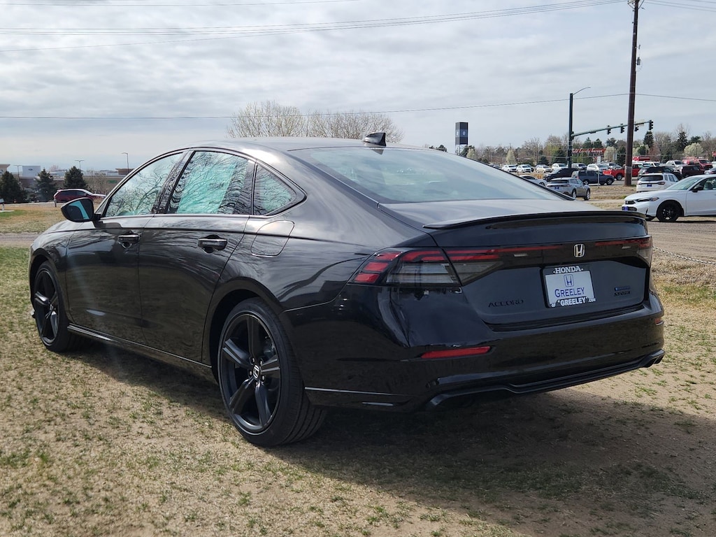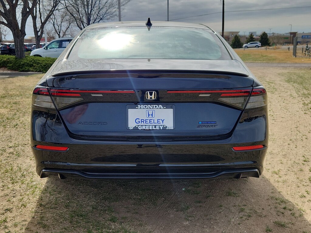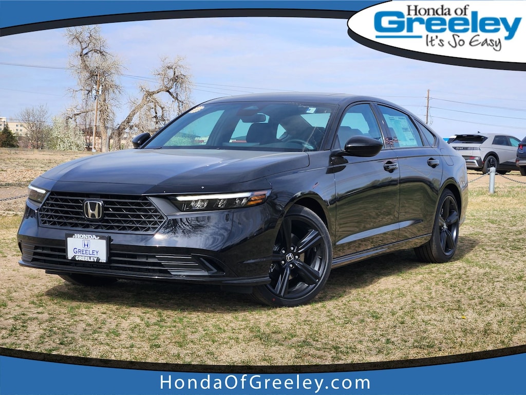 Crystal Black Pearl 2026 Honda Accord Hybrid Sport-L FWD CVT 2.0L I4 DOHC 16V 2.0L I4 DOHC 16V, 4-Wheel Disc Brakes, 8 Speakers, ABS brakes, Adaptive Cruise Control: Adaptive Cruise Control (ACC) with Low-Speed Follow, Air Conditioning, Alloy wheels, AM/FM radio, Apple CarPlay/Android Auto, Auto High-beam Headlights, Automatic temperature control, Blind Spot Information (BSI) System warning, Brake assist, Bumpers: body-color, Compass, Delay-off headlights, Driver door bin, Driver vanity mirror, Dual front impact airbags, Dual front side impact airbags, Electronic Stability Control, Emergency communication system: HondaLink, Exterior Parking Camera Rear, Four wheel independent suspension, Front anti-roll bar, Front Bucket Seats, Front Center Armrest, Front dual zone A/C, Front reading lights, Fully automatic headlights, Heated Front Bucket Seats, Heated front seats, Illuminated entry, Knee airbag, Lane departure: Lane Keeping Assist System (LKAS) active, Leather Shift Knob, Leather steering wheel, Leather-Trimmed Seat Trim, Low tire pressure warning, Memory seat, Occupant sensing airbag, Outside temperature display, Overhead airbag, Overhead console, Panic alarm, Passenger door bin, Passenger vanity mirror, Power door mirrors, Power driver seat, Power moonroof, Power passenger seat, Power steering, Power windows, Radio data system, Radio: 180-Watt Audio System, Rear anti-roll bar, Rear reading lights, Rear seat center armrest, Rear side impact airbag, Rear window defroster, Remote keyless entry, Security system, Speed control, Speed-sensing steering, Speed-Sensitive Wipers, Split folding rear seat, Spoiler, Steering wheel mounted audio controls, Telescoping steering wheel, Tilt steering wheel, Traction control, Trip computer, Variably intermittent wipers, Wheels: 19" x 8.5J Matte Berlina Black, 2.0L I4 DOHC 16V.