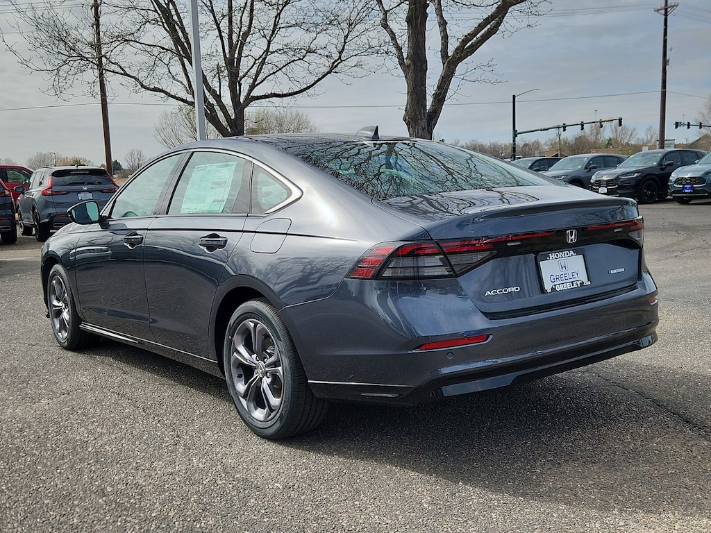 Gray Metallic 2026 Honda Accord Hybrid EX-L FWD CVT 2.0L I4 DOHC 16V 2.0L I4 DOHC 16V, 4-Wheel Disc Brakes, 8 Speakers, ABS brakes, Adaptive Cruise Control: Adaptive Cruise Control (ACC) with Low-Speed Follow, Air Conditioning, Alloy wheels, AM/FM radio, Apple CarPlay/Android Auto, Auto High-beam Headlights, Auto-dimming Rear-View mirror, Automatic temperature control, Blind Spot Information (BSI) System warning, Brake assist, Bumpers: body-color, Compass, Delay-off headlights, Driver door bin, Driver vanity mirror, Dual front impact airbags, Dual front side impact airbags, Electronic Stability Control, Emergency communication system: HondaLink, Exterior Parking Camera Rear, Four wheel independent suspension, Front anti-roll bar, Front Bucket Seats, Front Center Armrest, Front dual zone A/C, Front reading lights, Fully automatic headlights, Heated door mirrors, Heated Front Bucket Seats, Heated front seats, Illuminated entry, Knee airbag, Lane departure: Lane Keeping Assist System (LKAS) active, Leather Shift Knob, Leather steering wheel, Leather-Trimmed Seat Trim, Low tire pressure warning, Memory seat, Occupant sensing airbag, Outside temperature display, Overhead airbag, Overhead console, Panic alarm, Passenger door bin, Passenger vanity mirror, Power door mirrors, Power driver seat, Power moonroof, Power passenger seat, Power steering, Power windows, Radio data system, Radio: 180-Watt Audio System, Rear anti-roll bar, Rear reading lights, Rear seat center armrest, Rear side impact airbag, Rear window defroster, Remote keyless entry, Security system, Speed control, Speed-sensing steering, Speed-Sensitive Wipers, Split folding rear seat, Steering wheel mounted audio controls, Telescoping steering wheel, Tilt steering wheel, Traction control, Trip computer, Turn signal indicator mirrors, Variably intermittent wipers, Wheels: 17" x 7.5J Pewter Gray, 2.0L I4 DOHC 16V.