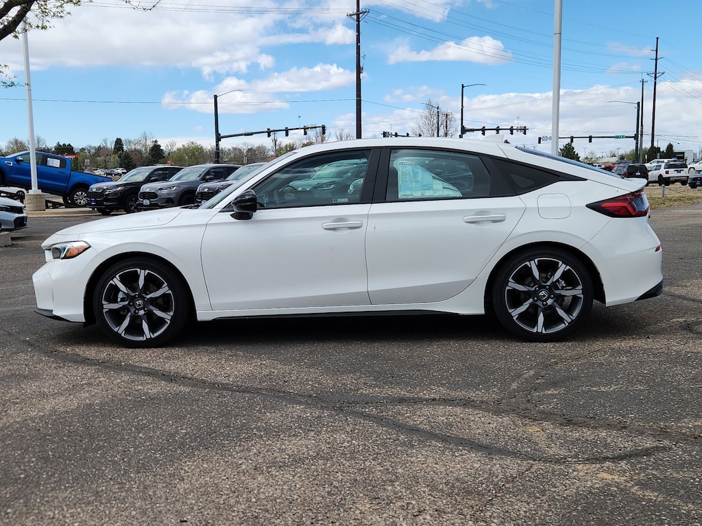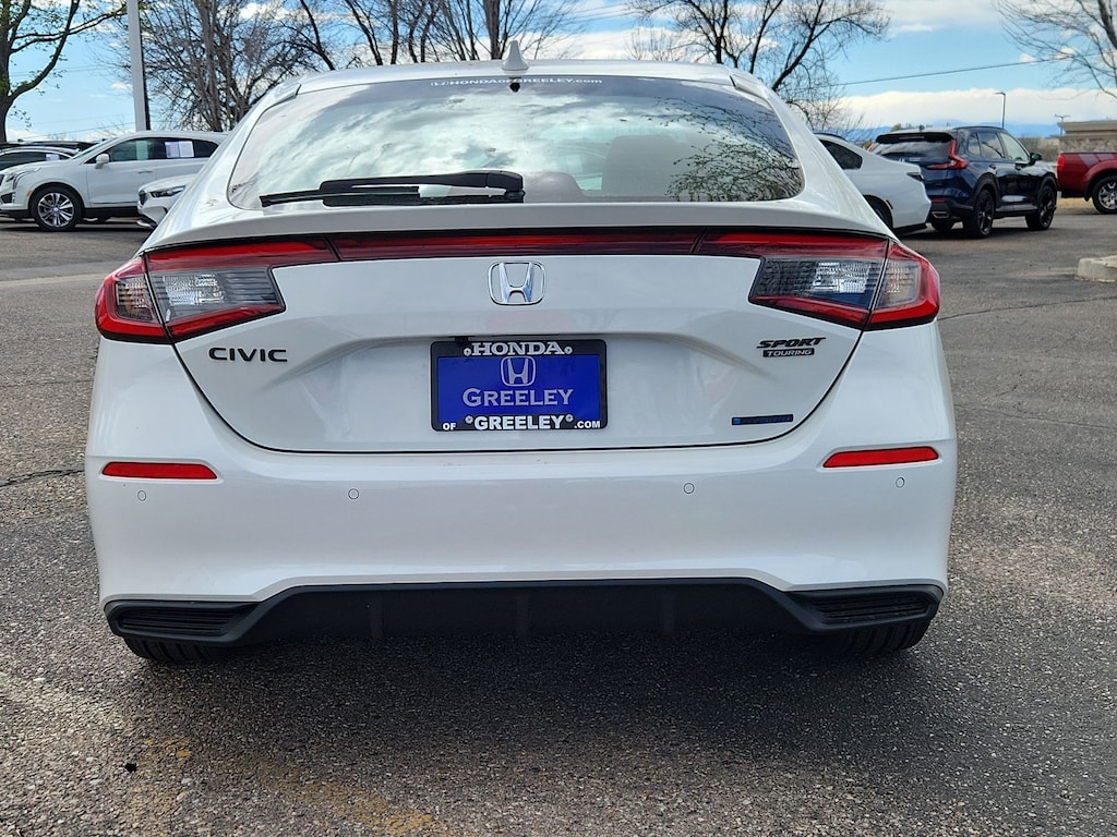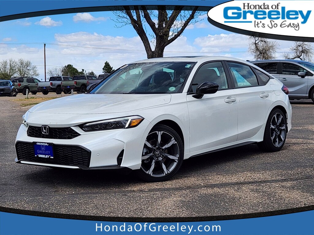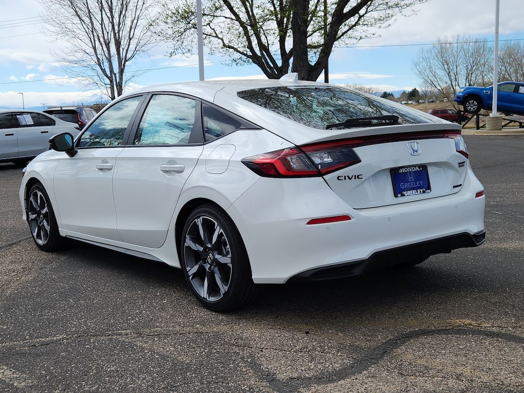 Platinum White Pearl 2026 Honda Civic Hybrid Sport Touring FWD eCVT 2.0L I4 DOHC 16V 2.0L I4 DOHC 16V, 12 Speakers, 4-Wheel Disc Brakes, ABS brakes, Adaptive Cruise Control: Adaptive Cruise Control (ACC) with Low-Speed Follow, Air Conditioning, Alloy wheels, AM/FM radio, Apple CarPlay/Android Auto, Auto High-beam Headlights, Auto-dimming Rear-View mirror, Automatic temperature control, Blind Spot Information (BSI) System warning, Bose Premium Sound System, Brake assist, Bumpers: body-color, Compass, Delay-off headlights, Driver door bin, Driver vanity mirror, Dual front impact airbags, Dual front side impact airbags, Electronic Stability Control, Emergency communication system: HondaLink, Exterior Parking Camera Rear, Four wheel independent suspension, Front anti-roll bar, Front Bucket Seats, Front Center Armrest, Front dual zone A/C, Front reading lights, Fully automatic headlights, Heated door mirrors, Heated Front Bucket Seats, Heated front seats, Illuminated entry, Knee airbag, Lane departure: Lane Keeping Assist System (LKAS) active, Leather Shift Knob, Leather steering wheel, Leather-Trimmed Seat Trim, Low tire pressure warning, Navigation system: Google Maps, Occupant sensing airbag, Outside temperature display, Overhead airbag, Overhead console, Panic alarm, Passenger door bin, Passenger vanity mirror, Power door mirrors, Power driver seat, Power moonroof, Power passenger seat, Power steering, Power windows, Radio data system, Rain sensing wipers, Rear anti-roll bar, Rear seat center armrest, Rear side impact airbag, Rear window defroster, Rear window wiper, Remote keyless entry, Security system, Speed control, Speed-sensing steering, Split folding rear seat, Steering wheel mounted audio controls, Tachometer, Telescoping steering wheel, Tilt steering wheel, Traction control, Trip computer, Turn signal indicator mirrors, Variably intermittent wipers, Wheels: 18" Alloy with Matte Shark Gray Inserts, 2.0L I4 DOHC 16V.