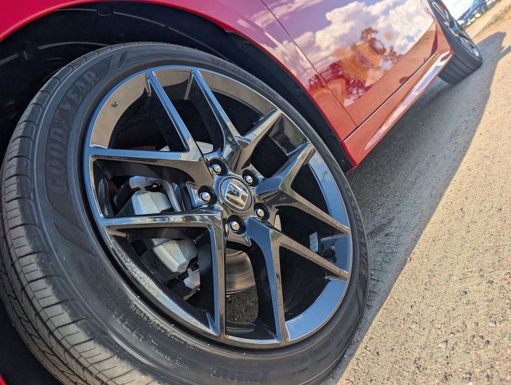 Rallye Red 2026 Honda Civic Hybrid Sport FWD eCVT 2.0L 16V DOHC 2.0L 16V DOHC, 4-Wheel Disc Brakes, 8 Speakers, ABS brakes, Adaptive Cruise Control: Adaptive Cruise Control (ACC) with Low-Speed Follow, Air Conditioning, Alloy wheels, AM/FM radio, Apple CarPlay/Android Auto, Auto High-beam Headlights, Automatic temperature control, Blind Spot Information (BSI) System warning, Brake assist, Bumpers: body-color, Cloth/Leatherette Seat Trim, Delay-off headlights, Driver door bin, Driver vanity mirror, Dual front impact airbags, Dual front side impact airbags, Electronic Stability Control, Emergency communication system: HondaLink, Exterior Parking Camera Rear, Four wheel independent suspension, Front anti-roll bar, Front Bucket Seats, Front Center Armrest, Front dual zone A/C, Front reading lights, Fully automatic headlights, Heated door mirrors, Heated Front Bucket Seats, Heated front seats, Illuminated entry, Knee airbag, Leather Shift Knob, Leather steering wheel, Low tire pressure warning, Occupant sensing airbag, Outside temperature display, Overhead airbag, Panic alarm, Passenger door bin, Passenger vanity mirror, Power door mirrors, Power moonroof, Power steering, Power windows, Radio data system, Radio: 180-Watt Audio System, Rear anti-roll bar, Rear seat center armrest, Rear side impact airbag, Rear window defroster, Remote keyless entry, Security system, Speed control, Speed-sensing steering, Split folding rear seat, Steering wheel mounted audio controls, Tachometer, Telescoping steering wheel, Tilt steering wheel, Traction control, Trip computer, Variably intermittent wipers, Wheels: 18" Gloss Black Alloy, 2.0L 16V DOHC.