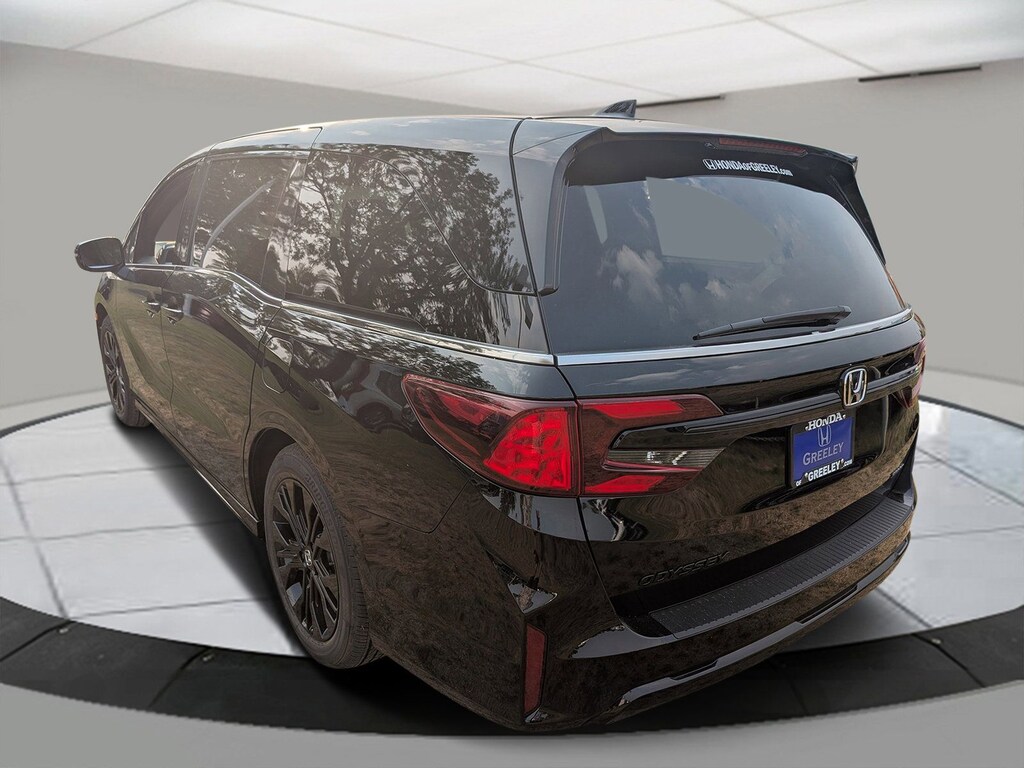 Crystal Black Pearl 2026 Honda Odyssey Sport-L FWD 10-Speed Automatic 3.5L V6 SOHC i-VTEC 24V 3rd row seats: split-bench, 4-Wheel Disc Brakes, 7 Speakers, ABS brakes, Adaptive Cruise Control: Adaptive Cruise Control (ACC) with Low-Speed Follow, Air Conditioning, Alloy wheels, AM/FM radio: SiriusXM, Anti-whiplash front head restraints, Apple CarPlay/Android Auto, Auto High-beam Headlights, Auto-dimming Rear-View mirror, Automatic temperature control, Blind Spot Information (BSI) System warning, Brake assist, Bumpers: body-color, Delay-off headlights, Driver door bin, Driver vanity mirror, Driver's Seat Mounted Armrest, Dual front impact airbags, Dual front side impact airbags, Electronic Stability Control, Exterior Parking Camera Rear, Four wheel independent suspension, Front anti-roll bar, Front Bucket Seats, Front dual zone A/C, Front fog lights, Front reading lights, Fully automatic headlights, Garage door transmitter: HomeLink, Heated door mirrors, Heated Front Bucket Seats, Heated front seats, Illuminated entry, Knee airbag, Lane departure: Lane Keeping Assist System (LKAS) active, Leather steering wheel, Leather-Trimmed Seats, Low tire pressure warning, Memory seat, Occupant sensing airbag, Outside temperature display, Overhead airbag, Overhead console, Panic alarm, Passenger door bin, Passenger seat mounted armrest, Passenger vanity mirror, Power door mirrors, Power driver seat, Power Liftgate, Power moonroof, Power passenger seat, Power steering, Power windows, Radio data system, Radio: 160-Watt AM/FM/HD/SiriusXM Audio System, Rear air conditioning, Rear anti-roll bar, Rear reading lights, Rear seat center armrest, Rear window defroster, Rear window wiper, Reclining 3rd row seat, Remote keyless entry, Security system, Speed control, Speed-sensing steering, Speed-Sensitive Wipers, Split folding rear seat, Spoiler, Steering wheel mounted audio controls, Tachometer, Telescoping steering wheel, Tilt steering wheel, Traction control, Trip computer, Turn signal indicator mirrors, Variably intermittent wipers, Wheels: 19" Gloss Black Alloy.