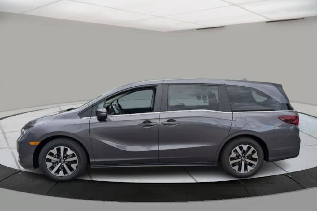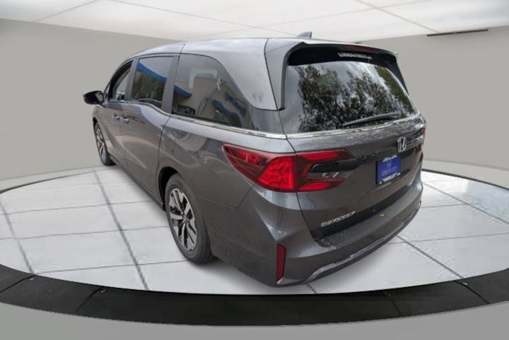 Modern Steel Metallic 2026 Honda Odyssey EX-L FWD 10-Speed Automatic 3.5L V6 SOHC i-VTEC 24V 18" Machine-Finished Alloy Wheels, 3rd row seats: split-bench, 4-Wheel Disc Brakes, 7 Speakers, ABS brakes, Adaptive Cruise Control: Adaptive Cruise Control (ACC) with Low-Speed Follow, Air Conditioning, Alloy wheels, AM/FM radio: SiriusXM, Anti-whiplash front head restraints, Apple CarPlay/Android Auto, Auto High-beam Headlights, Auto-dimming Rear-View mirror, Automatic temperature control, Blind Spot Information (BSI) System warning, Brake assist, Bumpers: body-color, Delay-off headlights, Driver door bin, Driver vanity mirror, Driver's Seat Mounted Armrest, Dual front impact airbags, Dual front side impact airbags, Electronic Stability Control, Exterior Parking Camera Rear, Four wheel independent suspension, Front anti-roll bar, Front Bucket Seats, Front dual zone A/C, Front fog lights, Front reading lights, Fully automatic headlights, Garage door transmitter: HomeLink, Heated door mirrors, Heated Front Bucket Seats, Heated front seats, Illuminated entry, Knee airbag, Lane departure: Lane Keeping Assist System (LKAS) active, Leather steering wheel, Leather-Trimmed Seats, Low tire pressure warning, Memory seat, Occupant sensing airbag, Outside temperature display, Overhead airbag, Overhead console, Panic alarm, Passenger door bin, Passenger seat mounted armrest, Passenger vanity mirror, Power door mirrors, Power driver seat, Power Liftgate, Power moonroof, Power passenger seat, Power steering, Power windows, Radio data system, Radio: 160-Watt AM/FM/HD/SiriusXM Audio System, Rear air conditioning, Rear anti-roll bar, Rear reading lights, Rear seat center armrest, Rear window defroster, Rear window wiper, Reclining 3rd row seat, Remote keyless entry, Security system, Speed control, Speed-sensing steering, Speed-Sensitive Wipers, Split folding rear seat, Spoiler, Steering wheel mounted audio controls, Tachometer, Telescoping steering wheel, Tilt steering wheel, Traction control, Trip computer, Turn signal indicator mirrors, Variably intermittent wipers.