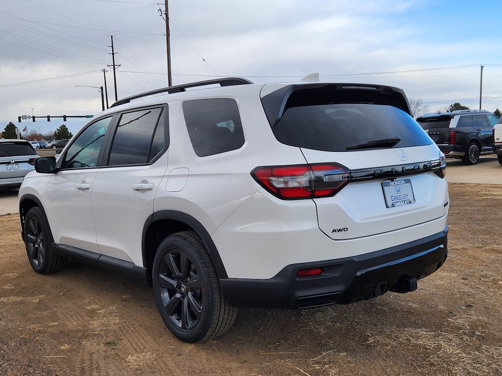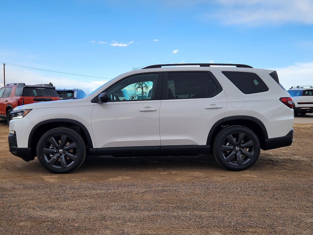 Platinum White Pearl 2026 Honda Pilot Sport AWD 10-Speed Automatic 3.5L V6 DOHC 24V AWD, 3rd row seats: split-bench, 4-Wheel Disc Brakes, 9 Speakers, ABS brakes, Adaptive Cruise Control: Adaptive Cruise Control (ACC) with Low-Speed Follow, Air Conditioning, Alloy wheels, Apple CarPlay/Android Auto, Auto High-beam Headlights, Automatic temperature control, Blind Spot Information (BSI) System warning, Brake assist, Bumpers: body-color, Cloth Seat Trim, Compass, Delay-off headlights, Driver door bin, Driver vanity mirror, Dual front impact airbags, Dual front side impact airbags, Electronic Stability Control, Emergency communication system: HondaLink, Exterior Parking Camera Rear, Four wheel independent suspension, Front anti-roll bar, Front Bucket Seats, Front Center Armrest, Front dual zone A/C, Front fog lights, Front reading lights, Fully automatic headlights, Heated Front Bucket Seats, Heated front seats, HondaLink, HondaLink Subscription Services, Illuminated entry, Knee airbag, Lane departure: Lane Keeping Assist System (LKAS) active, Low tire pressure warning, Navigation system: Google Maps, Occupant sensing airbag, Outside temperature display, Overhead airbag, Overhead console, Panic alarm, Passenger door bin, Passenger vanity mirror, Power door mirrors, Power driver seat, Power Liftgate, Power passenger seat, Power steering, Power windows, Radio data system, Radio: 245-Watt Audio System, Rear air conditioning, Rear anti-roll bar, Rear reading lights, Rear seat center armrest, Rear window defroster, Rear window wiper, Reclining 3rd row seat, Remote keyless entry, Security system, Speed control, Speed-sensing steering, Speed-Sensitive Wipers, Split folding rear seat, Spoiler, Steering wheel mounted audio controls, Tachometer, Telescoping steering wheel, Tilt steering wheel, Traction control, Trip computer, Variably intermittent wipers, Wheels: 20" Shark Gray with Black Lug Nuts, AWD.