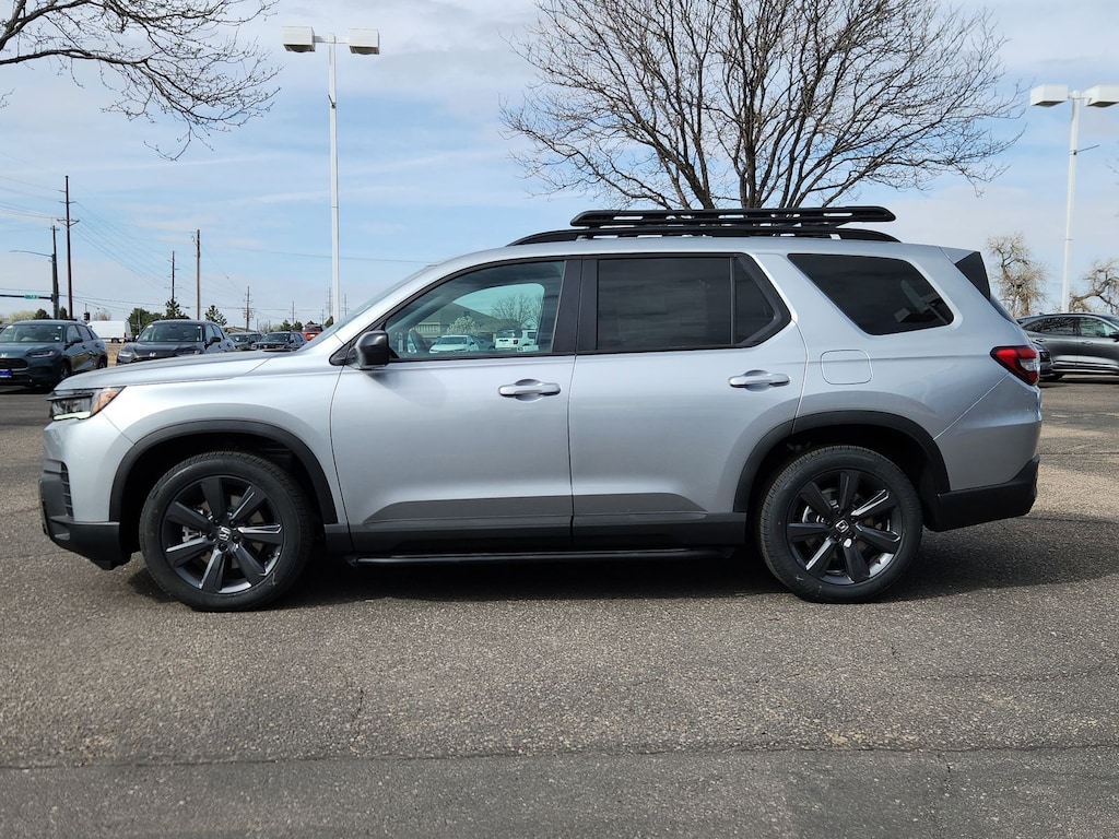 Solar Silver Metallic 2026 Honda Pilot Sport AWD 10-Speed Automatic 3.5L V6 DOHC 24V AWD, 3rd row seats: split-bench, 4-Wheel Disc Brakes, 9 Speakers, ABS brakes, Adaptive Cruise Control: Adaptive Cruise Control (ACC) with Low-Speed Follow, Air Conditioning, Alloy wheels, Apple CarPlay/Android Auto, Auto High-beam Headlights, Automatic temperature control, Blind Spot Information (BSI) System warning, Brake assist, Bumpers: body-color, Cloth Seat Trim, Compass, Delay-off headlights, Driver door bin, Driver vanity mirror, Dual front impact airbags, Dual front side impact airbags, Electronic Stability Control, Emergency communication system: HondaLink, Exterior Parking Camera Rear, Four wheel independent suspension, Front anti-roll bar, Front Bucket Seats, Front Center Armrest, Front dual zone A/C, Front fog lights, Front reading lights, Fully automatic headlights, Heated Front Bucket Seats, Heated front seats, HondaLink, HondaLink Subscription Services, Illuminated entry, Knee airbag, Lane departure: Lane Keeping Assist System (LKAS) active, Low tire pressure warning, Navigation system: Google Maps, Occupant sensing airbag, Outside temperature display, Overhead airbag, Overhead console, Panic alarm, Passenger door bin, Passenger vanity mirror, Power door mirrors, Power driver seat, Power Liftgate, Power passenger seat, Power steering, Power windows, Radio data system, Radio: 245-Watt Audio System, Rear air conditioning, Rear anti-roll bar, Rear reading lights, Rear seat center armrest, Rear window defroster, Rear window wiper, Reclining 3rd row seat, Remote keyless entry, Security system, Speed control, Speed-sensing steering, Speed-Sensitive Wipers, Split folding rear seat, Spoiler, Steering wheel mounted audio controls, Tachometer, Telescoping steering wheel, Tilt steering wheel, Traction control, Trip computer, Variably intermittent wipers, Wheels: 20" Shark Gray with Black Lug Nuts, AWD.