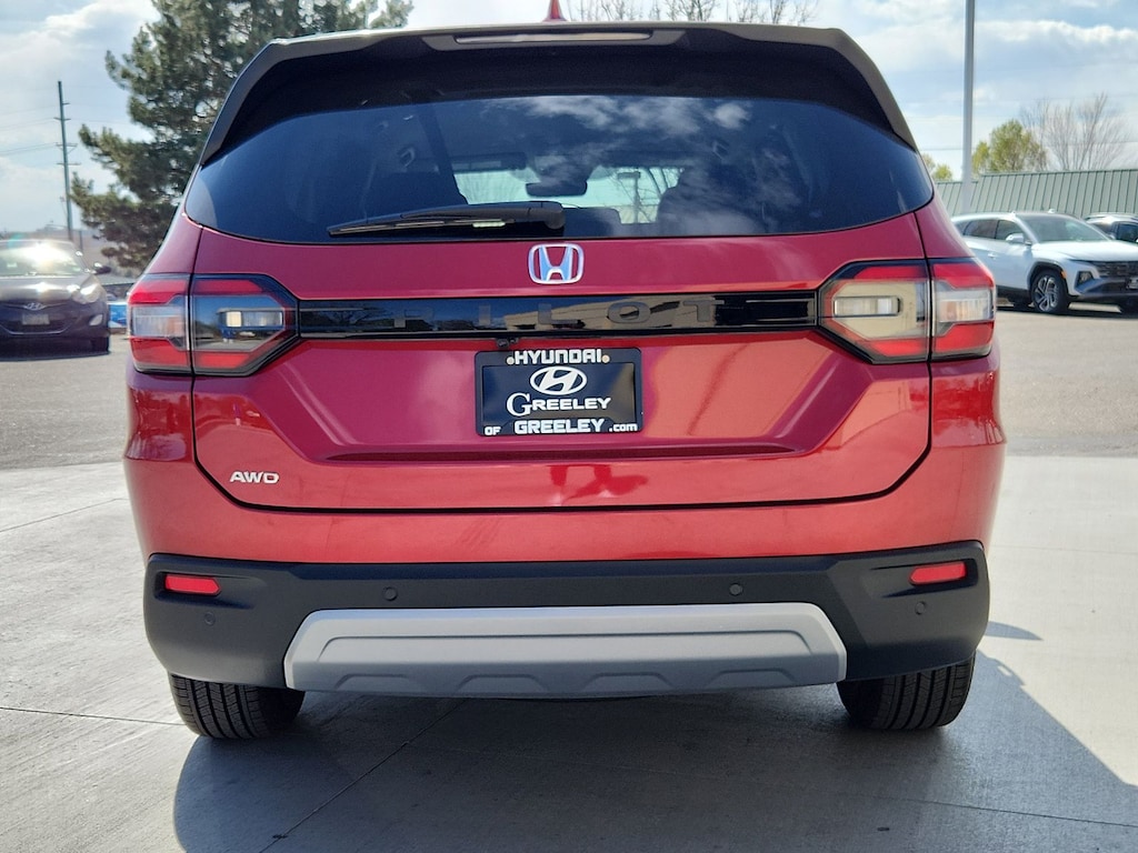 AWD, 3rd row seats: split-bench, 4-Wheel Disc Brakes, 4.167 Axle Ratio, 9 Speakers, ABS brakes, Adaptive Cruise Control: Adaptive Cruise Control (ACC) with Low-Speed Follow, Air Conditioning, Alloy wheels, AM/FM radio: SiriusXM, Apple CarPlay/Android Auto, Auto High-beam Headlights, Auto-dimming Rear-View mirror, Automatic temperature control, Blind Spot Information (BSI) System warning, Brake assist, Bumpers: body-color, Delay-off headlights, Driver door bin, Driver vanity mirror, Dual front impact airbags, Dual front side impact airbags, Electronic Stability Control, Emergency communication system: HondaLink Assist, Exterior Parking Camera Rear, Four wheel independent suspension, Front anti-roll bar, Front Bucket Seats, Front Center Armrest, Front dual zone A/C, Front fog lights, Front reading lights, Fully automatic headlights, Garage door transmitter: HomeLink, Heated door mirrors, Heated Front Bucket Seats, Heated front seats, Illuminated entry, Knee airbag, Lane departure: Lane Keeping Assist System (LKAS) active, Leather Seat Trim, Low tire pressure warning, Memory seat, Occupant sensing airbag, Outside temperature display, Overhead airbag, Overhead console, Panic alarm, Passenger door bin, Passenger vanity mirror, Power door mirrors, Power driver seat, Power Liftgate, Power passenger seat, Power steering, Power windows, Radio data system, Radio: 245-Watt Audio System, Rear air conditioning, Rear anti-roll bar, Rear reading lights, Rear seat center armrest, Rear window defroster, Rear window wiper, Reclining 3rd row seat, Remote keyless entry, Security system, SiriusXM, Speed control, Speed-sensing steering, Speed-Sensitive Wipers, Split folding rear seat, Spoiler, Steering wheel mounted audio controls, Tachometer, Telescoping steering wheel, Tilt steering wheel, Traction control, Trip computer, Turn signal indicator mirrors, Variably intermittent wipers, Wheels: 18" Pewter Gray Machined Face, AWD.